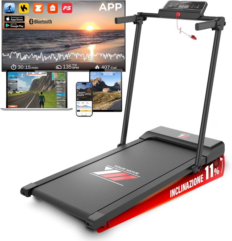 Scopri YM Tapis Roulant Salvaspazio Elettrico NEXT 1000 Your Move: allenati a casa fino a 12 km/h con maxi superficie da 42 cm, inclinazione e telaio rinforzato per performance e comfort senza ingombro